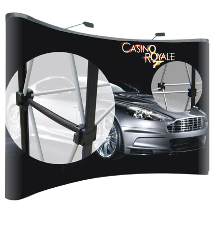 Material: Aluminio/plástico Gráfica: 70 cm x 230 cm Peso : 23 kg Incluye 2 focos Maleta de transporte (Productos Sujetos a Stock)